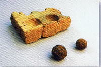 八王子城跡で出土した大砲の弾とその鋳型 |