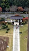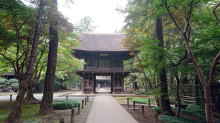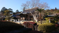 ↑中雀門から本堂への参道はよく整備されています。書院の奥の北庭「池泉鑑賞蓬莱庭園」は日本百名園のひとつ。桃山時代の作庭と推定されます。コロナの為拝観停止中。 |