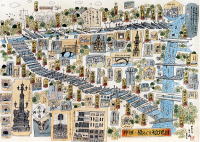 木下栄三氏の橋めぐりの絵図や、三十六見附の不思議絵も展示されています |