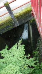 お不動様の足もとの橋からのぞき込むと滝に流れ込む水がすこーし見えます。 |