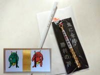 「鬼に金棒」お守り、頂いた白い「合格鉛筆」、鬼の絵が可愛いおみくじ。