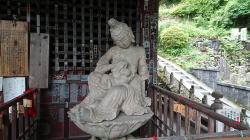本堂向かって右に安置されているのは、赤子に乳を与える珍しい「子育て観音」さま。 |