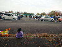 駐車場ではフリマ中。手前でひとり遊びに飽きて座っている少女 |