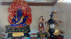 「開運青不動」として庶民の信仰を集めました。 昭和54年修復完成を期に開帳され、現在に至ります。色彩鮮やか。コロナ退散を祈願しました。 |