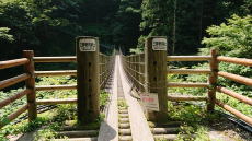 真ん中が丸太なので、足元を見ると渓流が見えます。高所恐怖症の人は苦手かも |