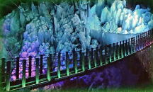 吊り橋の周囲に氷柱が作られこんな風にライトアップされます。 |