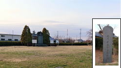 | 鴻巣の史跡公園から車で2,3分の行田市内にも石田堤の一部が残されています。↑は石田堤跡の碑。向こう側は縄文時代の石田遺跡 |