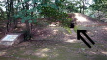 | 前橋市大室古墳はJRのCMで有名になりました。赤い印は吉永小百合さんが登場した撮影場所 |