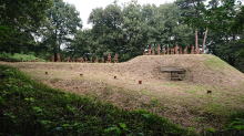 南側の土塁の埴輪の行列。この内側を東から西へ、小百合さんが歩くシーンが放映されました |