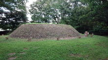 | この上に稲荷社があったので稲荷塚古墳と呼ばれます。 東西20m南北16m。現状では円墳ですが、崩れて元の形を失っていると考えられます。 |