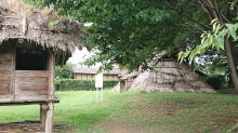 高床式の穀物倉庫や竪穴式住居も復元されています |