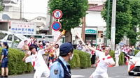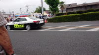 露払いのパトカーがまず通り過ぎ、「あと15分ほどでリレー走者が通ります。」とアナウンスがありました。 |