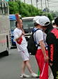 知り合いのカメラにポーズを取って待っていた年配の男性に、いかにもアスリートといった若者からのトーチキス!彼は大学の陸上の選手で長距離界のエースらしい。 |