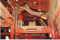 本堂は唐様建築。肘木の曲線゙が美しく、朱が華やかです。天井絵は17世紀の画家狩野常燿の龍。写真はパンフから。 |
