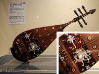 | なんといっても一番見たかった螺鈿紫檀五弦琵琶。異国風のデザインと華やかな細工。精巧なレプリカは撮影自由でした。 |