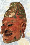 伎楽面「酔胡王」。胡人の特徴である高い(長い)鼻を持った王の面。酒に酔い舞い踊る胡人を演じるのでしょう |