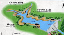 地図の中心の⇐部にある園のシンボル「天馬の塔」 。何しろ広い(46ha)ので全部を1日で楽しむのは難しいかも |