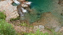 吊り橋の先も渓流を見ながら歩きます。滝もいくつかあり、やはり山の中は涼しい |