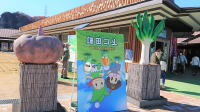 | まずは「道の駅しもにた」へ。下仁田といえば蒟蒻と葱。「ねぎ坊」と「にゃくっち」の看板は何故かさかさま。 |