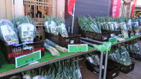 太くて立派な下仁田ネギがたくさん。他にも新鮮な野菜やご当地のお菓子、神津牧場の乳製品もあります |