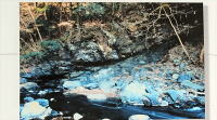 上流から流れてきた石が急流で回転し、川床に正円形の凹みを穿ち、できたのが甌穴です |