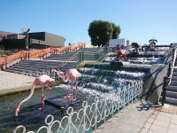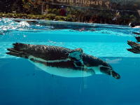 | ペンギンヒルズはフンボルトペンギンの生息地でもあるチロエ島を再現。プールではペンギンたちが勢いよく泳ぎ回ります |