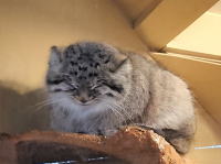 私がぜひみたかったマヌル猫。モンゴルの寒く乾いた荒地の岩場に住み、寒さから身を守るため、長い毛を持つふっくら体型です |