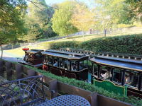 | 広い園内。汽車(彩ポッポ)に乗れば楽ちん。可愛くて綺麗な乗り物だけど、平日は1時間1本、休日でも30分1本だもんなあ。 |