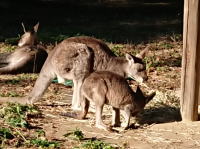 オオカンガルーの親子。ごろごろ寝ているカンガルーが沢山いる中でママのカンガに甘えるルーが可愛かった。 |