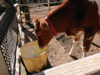 乳しぼり体験もできます。↑は今年の1月に生まれた丑年うまれのペコちゃんです。生下時体重49kgと書いてありました。今何kg? |