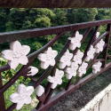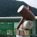 浦山ダムのあるさくら湖へは欄干に桜の飾りのある「さくら橋」を渡って行きます。 |