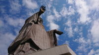 願い事の叶うモニュメントがありますがコロナのため触るなと注意書が |