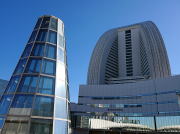 いいお天気。パシフィコ横浜ノース中庭には大きな忍城バルーンが。 |