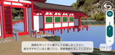 アプリをダウンロードし、説明版のQRコードを読み取ると↑のような3DVR画像が見られます。 これは南翼廊・南中門。二階堂も見ることができます |