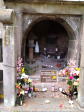 神君を尊敬して止まなかった家光公が作らせたという家康木像は本人に一番似ているそうです。位牌の並ぶ蔵に安置されています。右は安国院即ち家康公の墓石 |