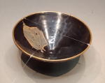 本物の桑葉が焼き付けられている木葉天目茶碗。桑の葉は禅に通じるそうです |