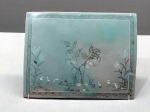| 厚さ5mmほどの「青磁象嵌六鶴文陶板」。美しい地色。用途はわかっていません |