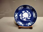 瑠璃地白花牡丹文 盤。景徳鎮窯。このような美しい瑠璃色を発色しているものも |