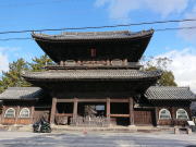 長楽寺の中心三仏堂(上)や太鼓門(左)は慶安4年家光公が再造を命じつくらせた建物。明治、昭和の修復を経て現在の姿に |