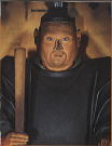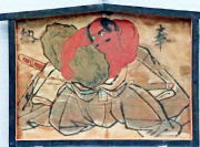 怪力だったと言われる重忠。↑は絵馬「重忠力石持」。鎌倉永福寺にはこの力石と伝わる大石があるそうです。 |