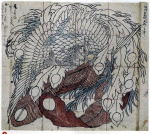 北斎は生涯で4つの鳳凰を描いています。↑は岩松院天井絵線描下絵 |