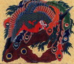 4枚の鳳凰のひとつ、ボストン美術館屏風絵(部分)。頭部の構図は同じです |