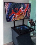 | 3Dダイブシアターでは岩松院本堂に差し込む日光による天井画の変化や八方睨み、縁取りの黒線の変化を体験 |