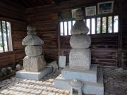 | 重忠公主従の墓として六基の五輪塔があります。昭和57年に覆屋が建てられて保存されています |