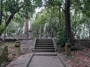 階段の上に比企氏一族の墓があります。 この奥に比企氏の館があったと思われます |