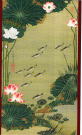 若冲の動植綵絵から10幅が展示されています。蓮池遊魚図と芍薬群蝶図(私の絵葉書コレクションから) |