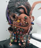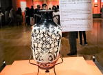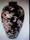 漆黒の地に細い金糸を置き、七宝で絵付けがされている花瓶 |
