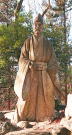 左は重忠公記念公園(下)にある重忠の墓のレプリカ。初めは満福寺にあった。右は菅谷城址にある畠山重忠公の銅像 |