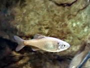 これも絶滅危惧種のミナミメダカ。かつては身近な生き物で童謡にもあるのに。 |