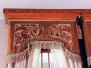 カーテンボックスの刺繍は窓ごとに違うデザインでした |